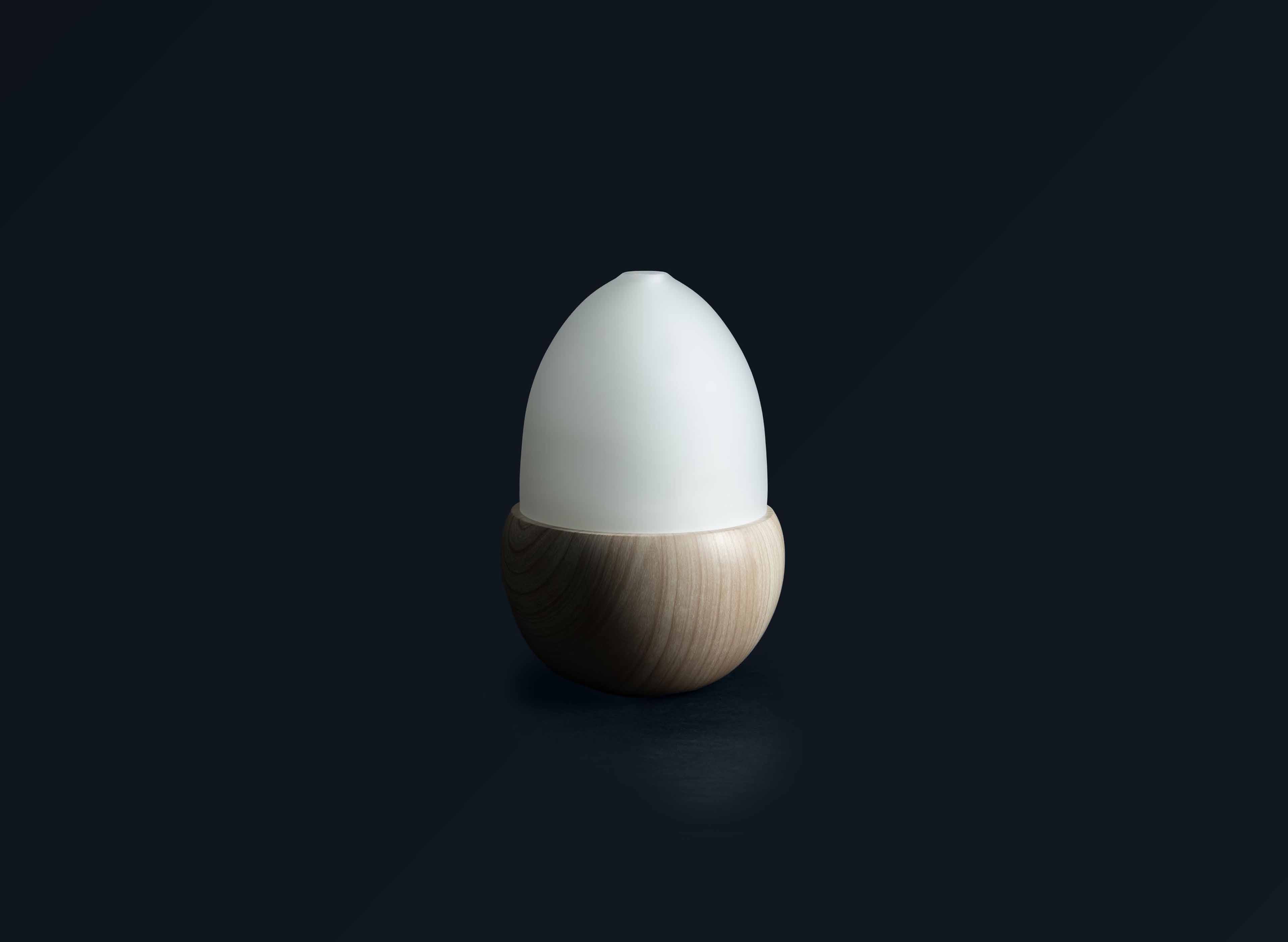 This ultrasonic diffuser adds a touch of playful friendliness to any home or office, featuring a beautifully grained natural wood base with a chic frosted glass top cover.